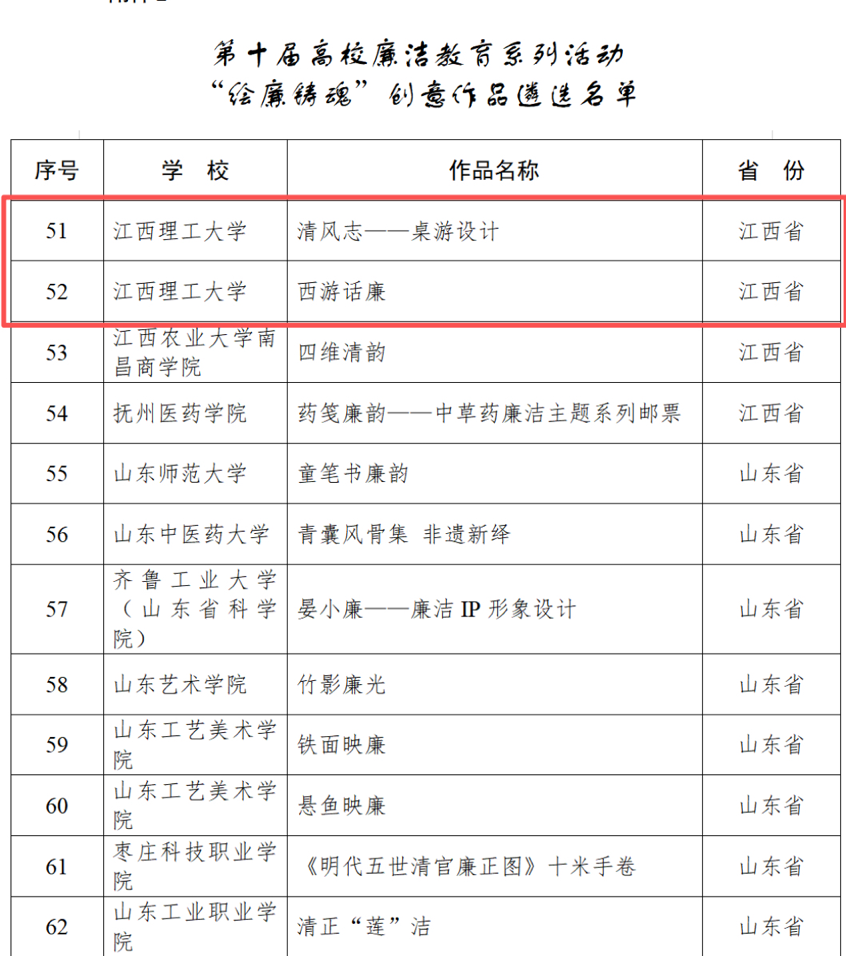 本网讯 近日,教育部以“清风育德守初心 廉洁笃行担使命”为主题组织开展了第十届高校廉洁教育系列活动本并公布活动遴选结果。颜射 共有3件作品成功入选,入选数量位列江西省高校第一,充分展现了学校在廉洁文化建设和思想政治教育工作中的扎实成效与突出实力。