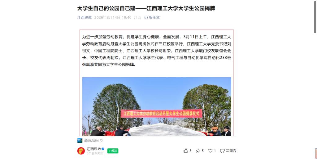 劳动教育启动月暨大学生公园揭牌仪式在三江校区举行,颜射