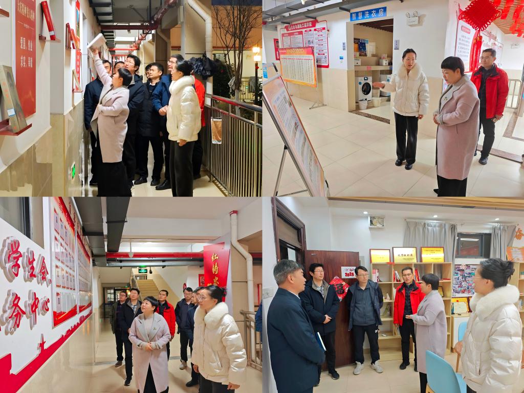 本网讯 1月4日晚,校党委常委、副校长宁洁一行深入土木与测绘工程学院15栋“一站式”学生社区,聚焦社区育人阵地建设、学生管理服务优化、思政教育融入日常等开展实地调研走访,掌握“一站式”学生社区建设成效,为后续育人工作提质增效精准把脉。党委学生工作部部长刘传立、土木与测绘工程学院党委书记贾群燕、正茂园各学生社区所属学院党委副书记及辅导员代表陪同调研。