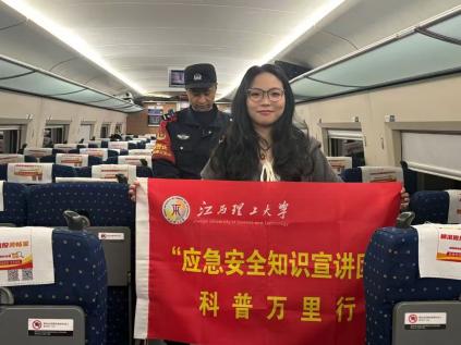 本网讯 寒假如约而至,“返家乡” 的列车鸣笛启程。为切实普及安全知识,助力守护出行平安,学校安全工程学院联合赣州铁路公安处乘警支队,在G1354/G1355等13次列车开展“平安列车,青春护航”主题列车宣讲活动。学子们化身“流动安全员”,以专业行动筑牢旅途安全防线,让归乡之路满含平安与暖意。