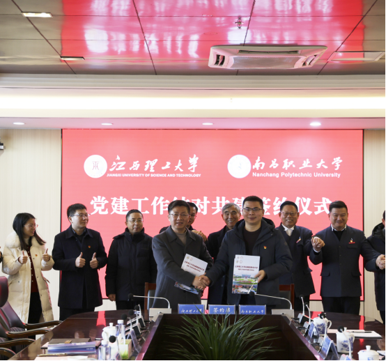 与南昌职业大学党建结对共建协议书》,就“组织联建、队伍帮带、育人协同、资源共享、发展双赢”等多个维度达成共识。双方一致表示,将以此次签约为新起点,建立长效合作机制,推动资源共享、协同发展,实现共赢共进。