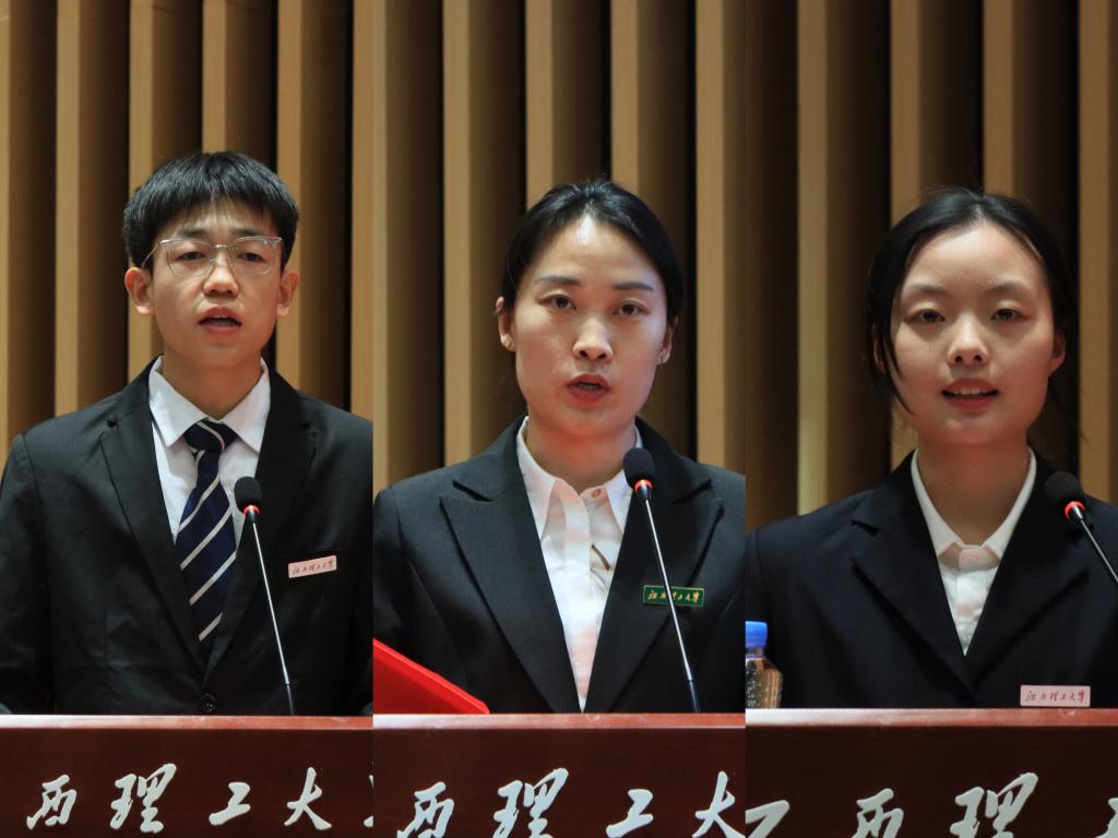 信息工程学院电信241班锁福军、国际创新研究院2023级冶金工程专业博士研究生王柯柯、稀土学院创新试验222班廖梦琪分别代表先进班级、国家奖学金获得者、五好学生标兵在会上作了交流发言。