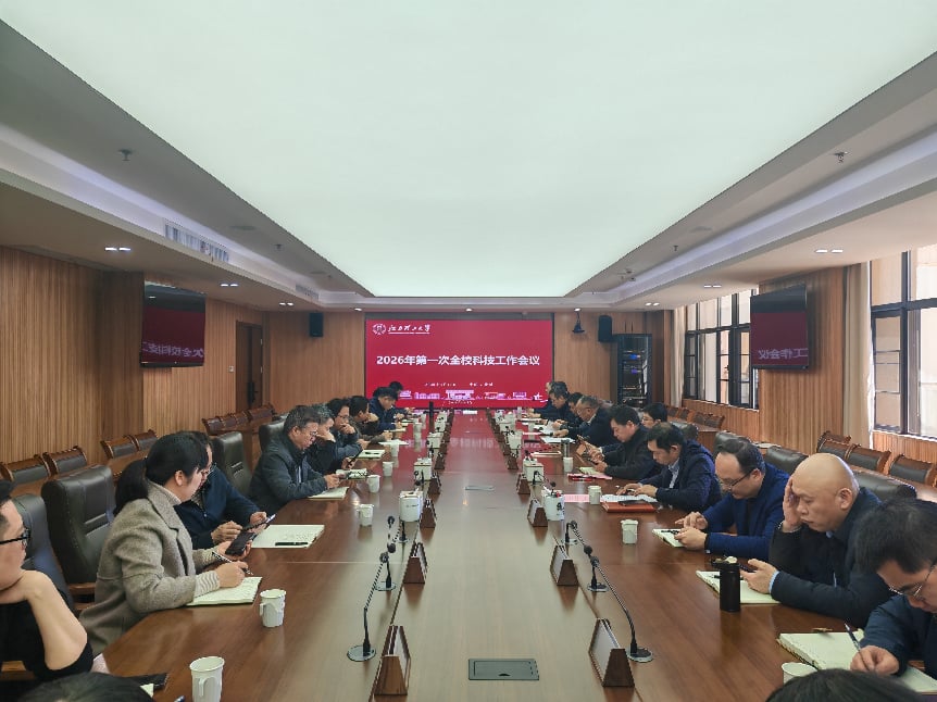 2026年第一次全校科技工作会议在三江校区召开。会议主要围绕科技管理运行改革部署展开。副校长汪航、三大卓越创新中心办公室副主任、各学院(国创院)分管科研工作副院长、省实验室相关部门负责人出席会议,科学技术处、社会科学处、技术转移转化中心、大学科技园服务中心全体人员参加会议。会议由校科学技术处处长吴彩斌主持。