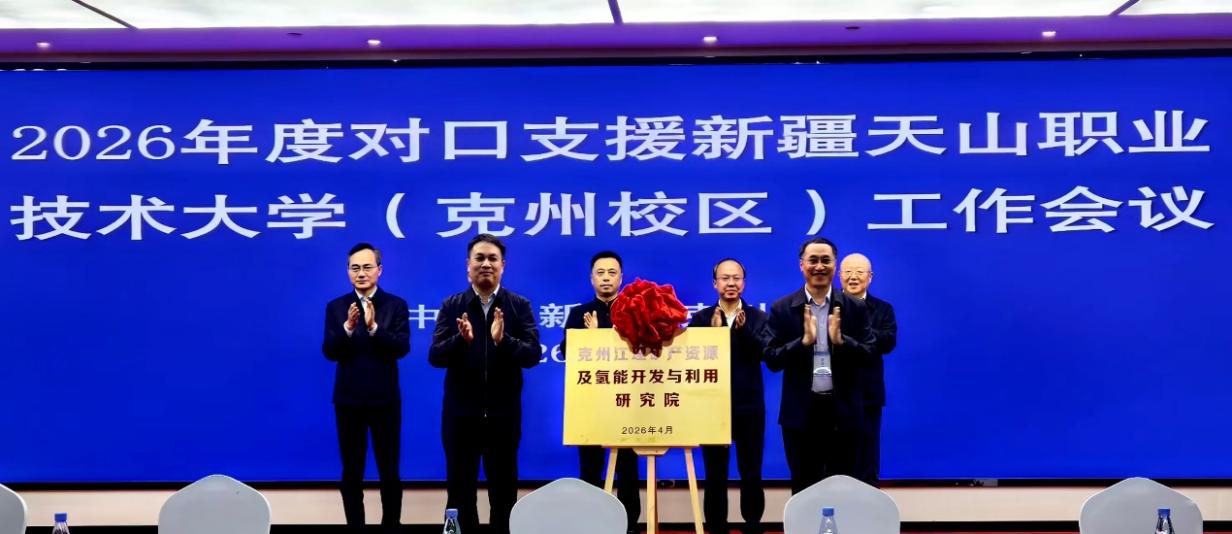 本网讯 4月17日,校党委书记刘祖文赴新疆克孜勒苏柯尔克孜自治州出席2026年度对口支援新疆天山职业技术大学(克州校区)工作会议。会上,刘祖文与江西援疆前指党委书记赖晓军共同为颜射 与该校共建的“克州江理矿产资源及氢能开发与利用研究院”揭牌,学校援疆教师代表黄丽娜在会上作典型发言。