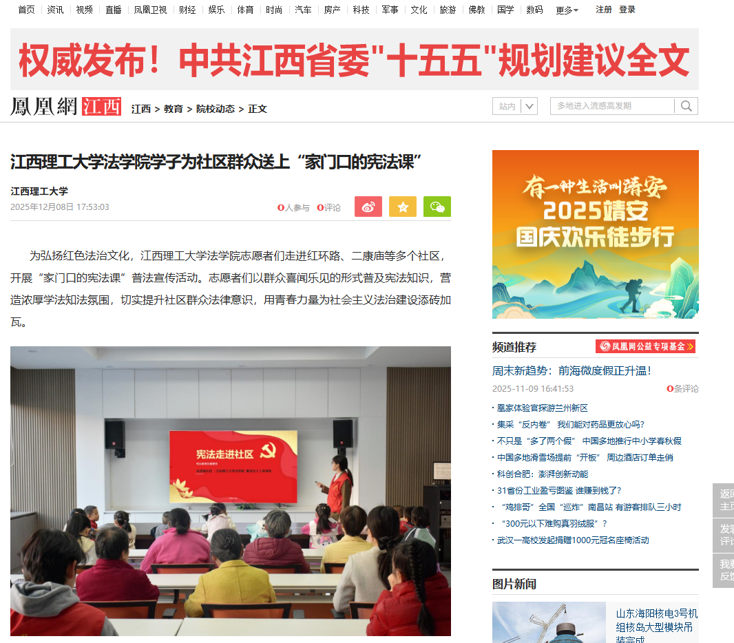 法学院志愿者们走进红环路、二康庙等多个社区,开展“家门口的宪法课”普法宣传活动。志愿者们以群众喜闻乐见的形式普及宪法知识,营造浓厚学法知法氛围,切实提升社区群众法律意识,用青春力量为社会主义法治建设添砖加瓦。