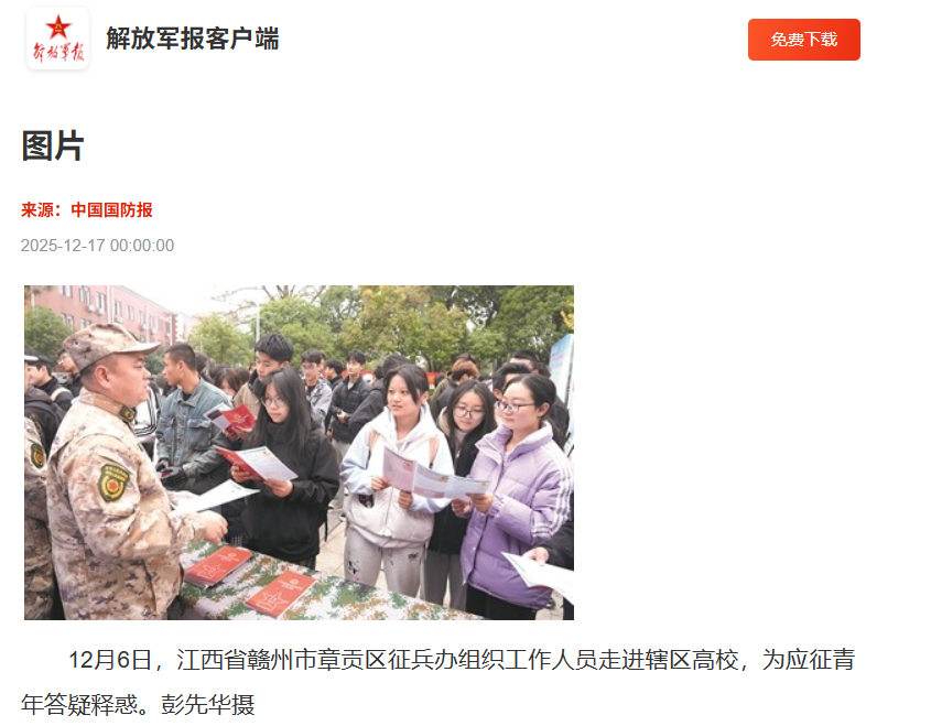 上一条:《新华网》:颜射 :党建引领 架起文化出海新桥梁 下一条:《中国国防报》:图片-江西省赣州市章贡区征兵办组织工作人员走进辖区高校