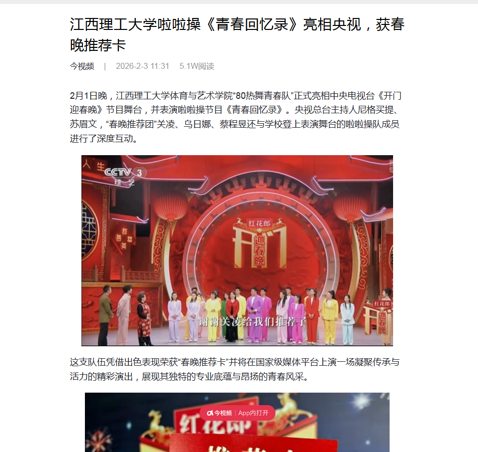 这支队伍凭借出色表现荣获“春晚推荐卡”并将在国家级媒体平台上演一场凝聚传承与活力的精彩演出,展现其独特的专业底蕴与昂扬的青春风采。