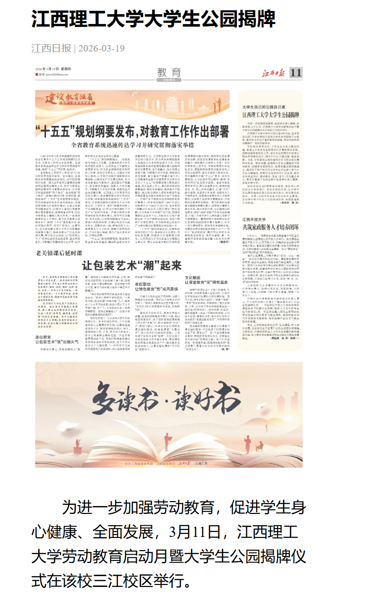劳动教育启动月暨大学生公园揭牌仪式在该校三江校区举行。