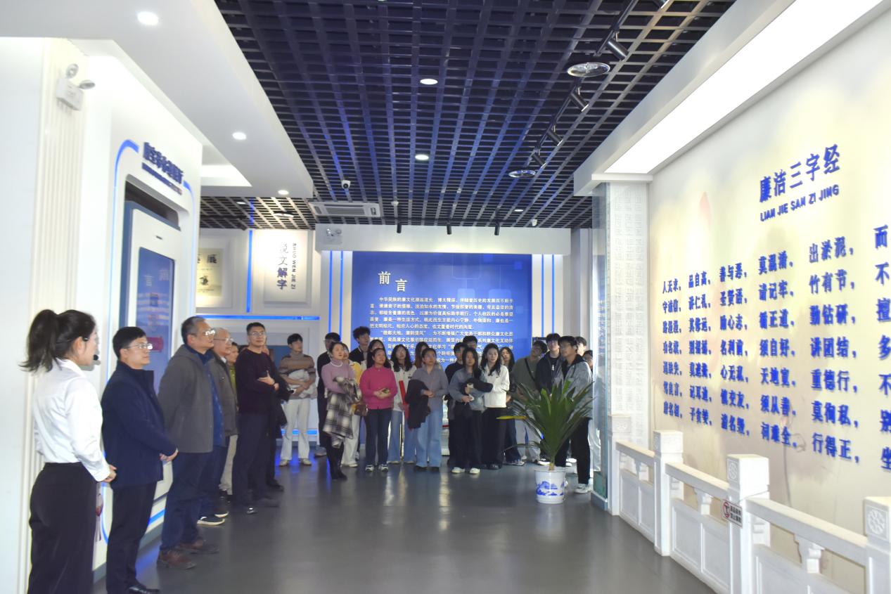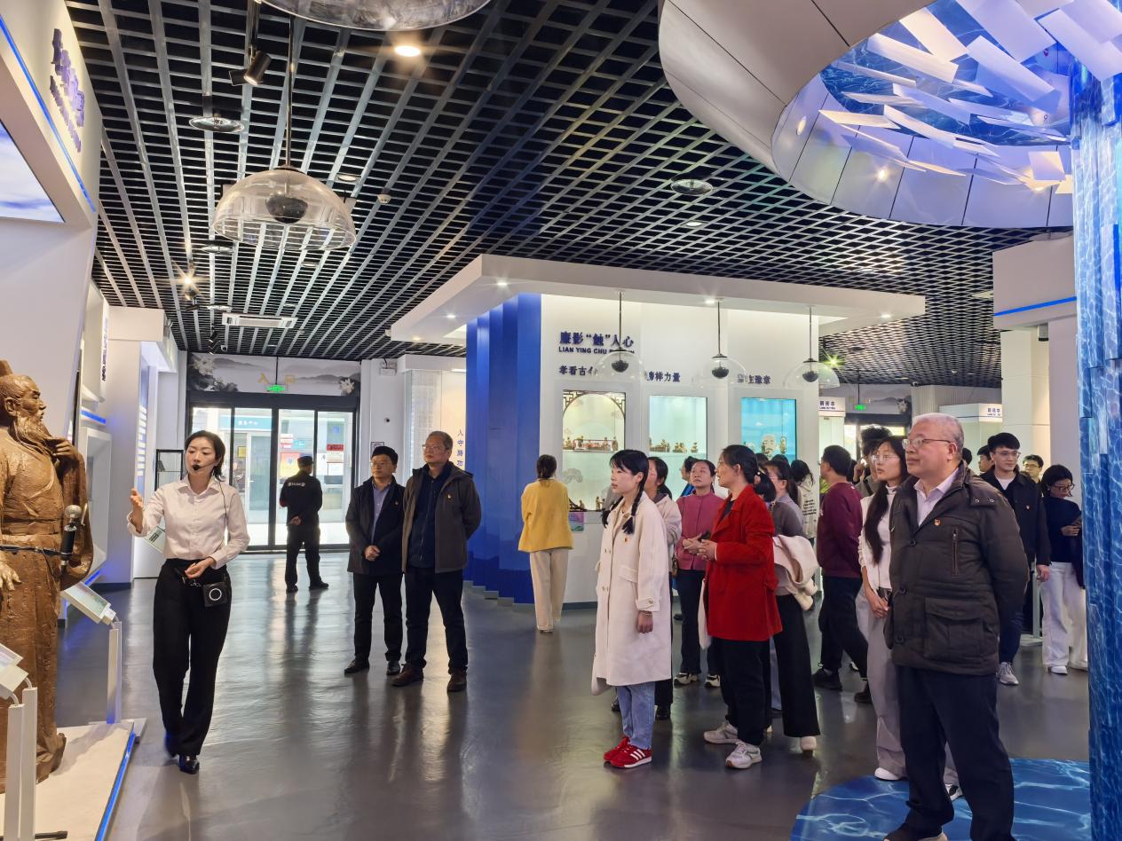 在讲解员引导下,全体人员依次参观各主题展区,接受沉浸式廉洁文化教育。展馆一层以 “廉脉传承” 为核心,设有说文解 “廉”、先贤廉范、姓氏家训等板块。党员们驻足历史文献与图文展板前,认真学习 “廉” 字起源与文化内涵,品读古代清官廉吏治政修身故事;在南昌本土先贤勤廉事迹展区,大家深入了解海瑞、汤显祖及近代革命先辈清廉操守,在历史对照中感悟中华优秀廉洁文化的精神传承。
