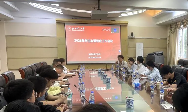 心理健康教育中心在红旗校区行政楼四楼第二会议室召开2026年学生心理普查工作会议。心理健康教育中心主任郭修凤出席会议并讲话,全体专职心理教师、各学院心理辅导员、研究生辅导员参加会议,南昌校区及先进铜产业学院相关负责人线上同步参与。