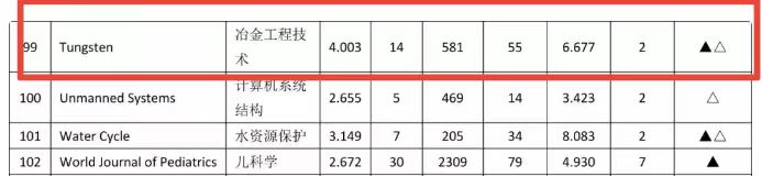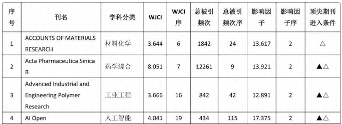 注:表中“★”表示WJCI指数学科排名进入TOP5%,“☆”表示WJCI指数学科排名在TOP3,“●”表示总被引频次学科排名进入TOP5%,“○”表示总被引频次学科排名在TOP3,“▲”影响因子学科排名进入TOP5%,“△”影响因子学科排名在TOP3。