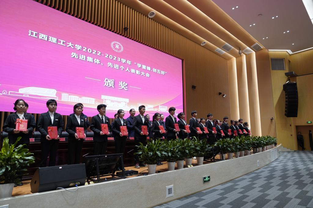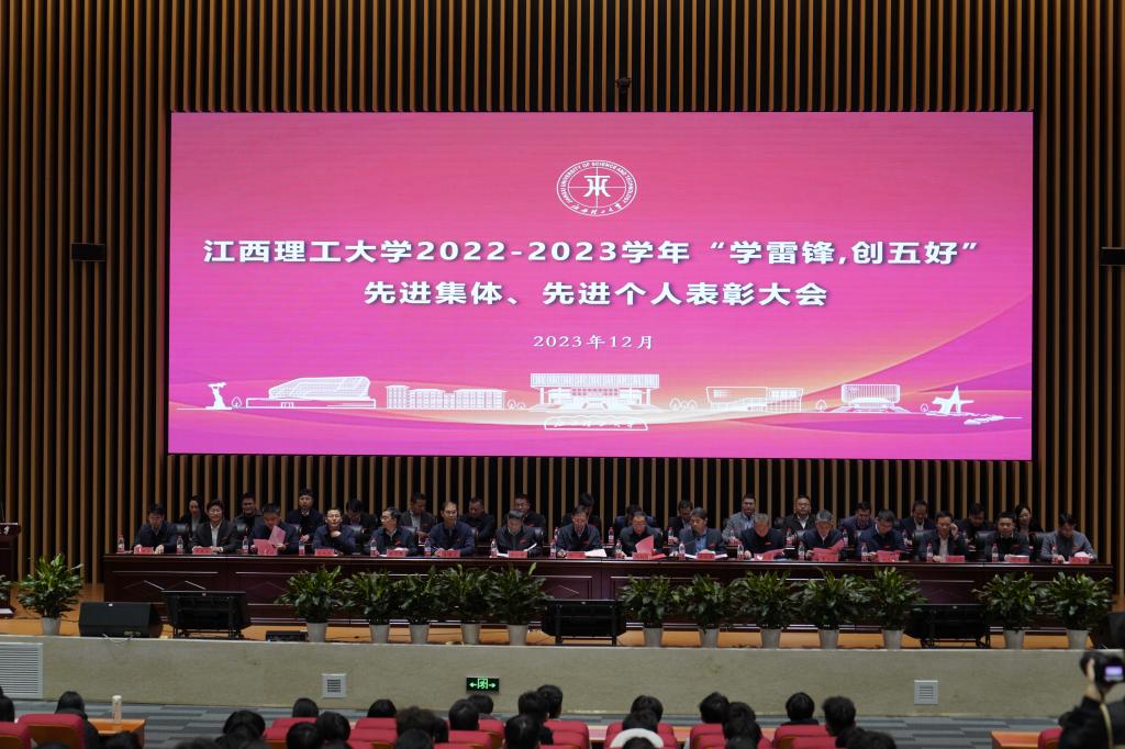 在三江校区志远会议中心召开2022-2023学年“学雷锋,创五好”先进集体、先进个人表彰大会。校领导杨斌、罗仙平、龚姚腾、廖春发、唐云志、黄志繁、董冰岩,校党委常委盛晓明、刘志刚、汪锋锁出席本次大会,各学院及相关部门负责人和师生代表参加了表彰大会,南昌校区、先进铜产业学院(鹰潭)视频同步参加会议。大会由校党委常委、副校长龚姚腾主持。