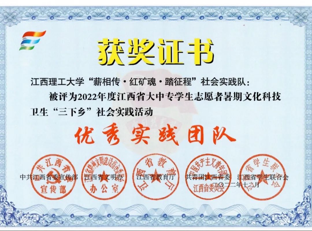 挖掘整合省内矿业类单位及企业资源,与铁山城钨矿 (共和国第一国企)、西华山钨矿等企业协同建立“红色+矿治”思政教育基地。通过“三下乡”践行社会主义核心价值观,“三下乡”暑期社会实践队足迹遍布赣州50余个社区、企业和乡村。