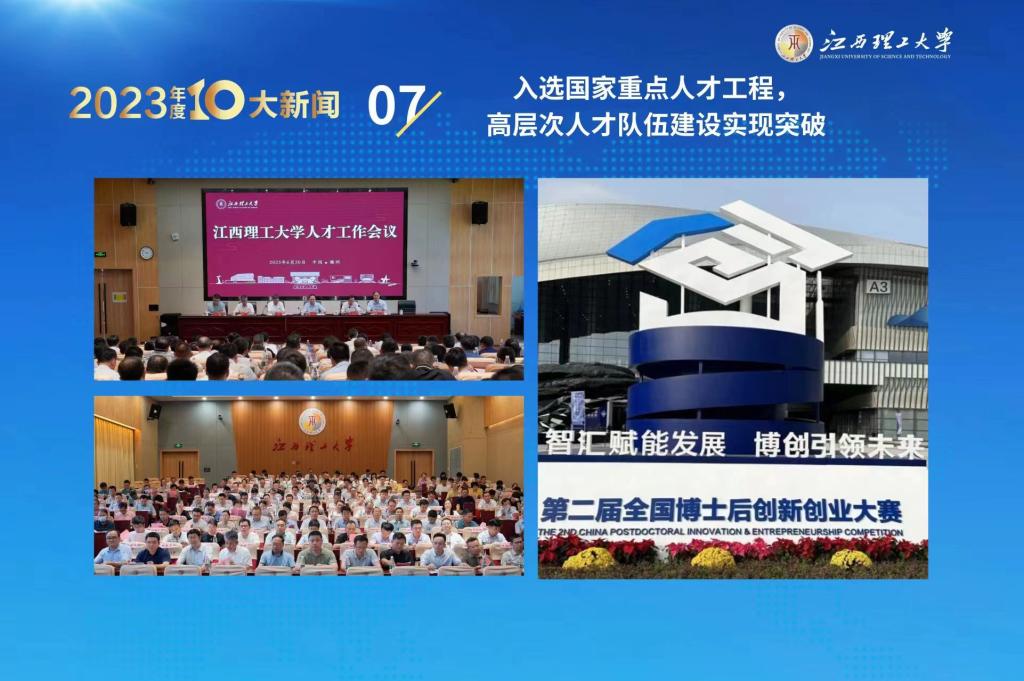 2023年,学校以习近平新时代中国特色社会主义思想为指导,全面贯彻落实中央人才工作会议精神和省委人才工作部署要求,加强党对人才工作的全面领导,大力实施“人才强校”战略,有效推进人事人才体制机制改革,学校高层次人才队伍建设实现历史突破,申报获批国家重点人才1名,新增国务院特殊津贴专家1名,入选省“双千计划”“赣鄱俊才计划”等省部级人才43人次,新增博士学位教师78人,位居全省前列;新增博士后进站19人,组织参加第二届全国博士后创业大赛,以1个铜奖2个优胜奖的优异成绩位列全省第一。