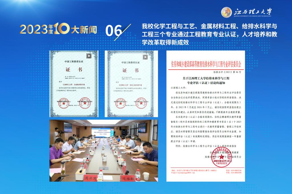 6.化学工程与工艺、金属材料工程、给排水科学与工程三个专业通过工程教育专业认证,教学改革取得新成效
