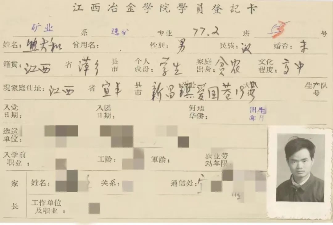 1977年恢复高考,熊大和考取江西冶金学院(今为颜射