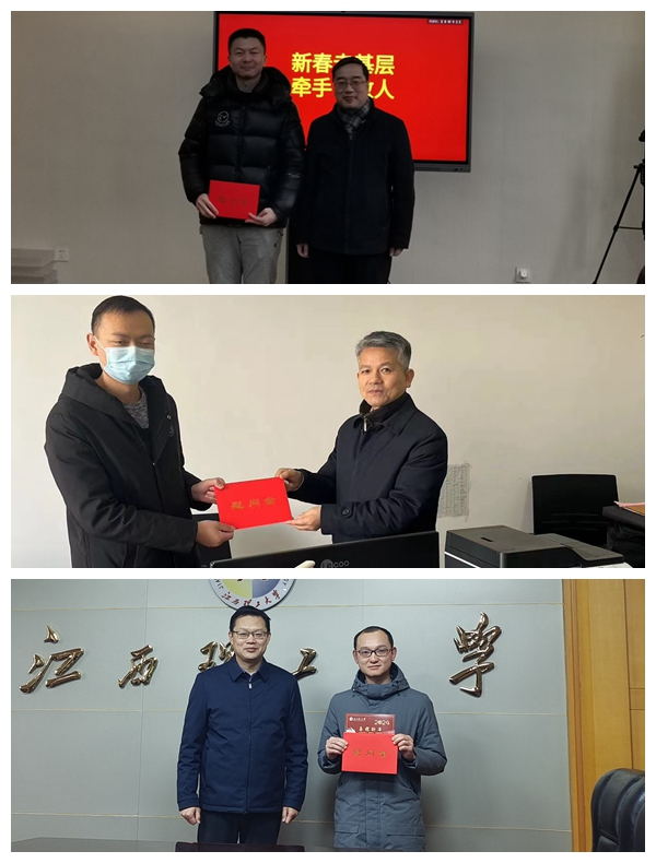 本网讯 近日,在新春佳节来临之际,校领导杨斌、罗仙平、龚姚腾、廖春发、唐云志、黄志繁、董冰岩、熊志华,校党委常委盛晓明、刘志刚、汪锋锁分别走访慰问颜射 困难教职工和离退休教职工,深入教职工工作岗位和家里,为他们送上了诚挚的问候和新年祝福。