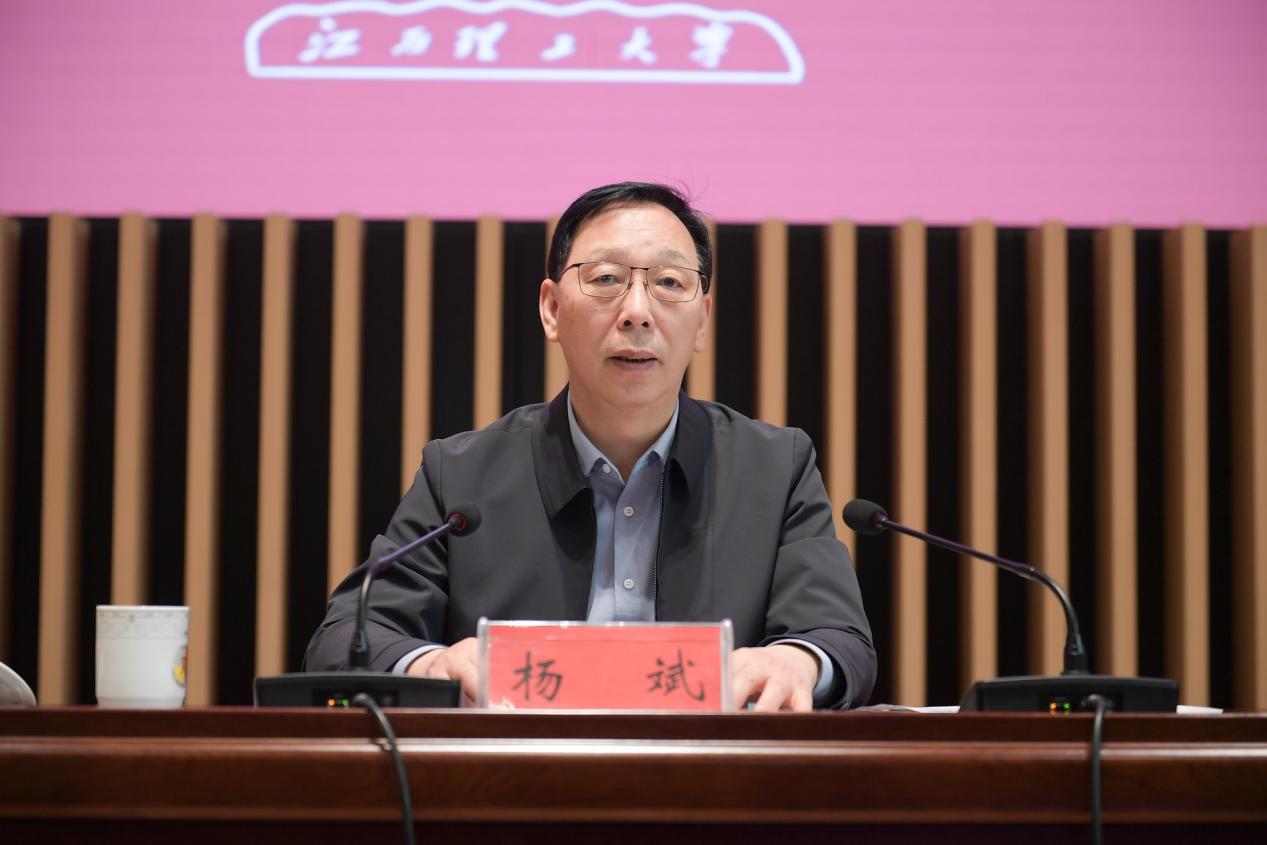 杨斌强调,我们要深刻认识到,注重落实、狠抓落实是我们党一直秉承的优良传统和制胜法宝,也是推动学校各项事业发展的重要保障。2024年是新中国成立75周年,是学校实现“十四五”规划目标任务的关键一年,学校要是坚持以上率下,切实提高抓落实的政治自觉;要坚持聚焦重点,有效汇聚抓落实的强大合力;要坚持系统思维,不断完善抓落实的体制机制;要坚持一抓到底,着力打造抓落实的江理样板。发扬“功成不必在我、功成必定有我”的精神,坚持一张蓝图绘到底、一茬接着一茬干,持之以恒抓落实,以钉钉子精神推动各项工作落实落细,不断开创学校事业高质量发展新局面,为奋力谱写中国式现代化江西篇章作出新的更大贡献。