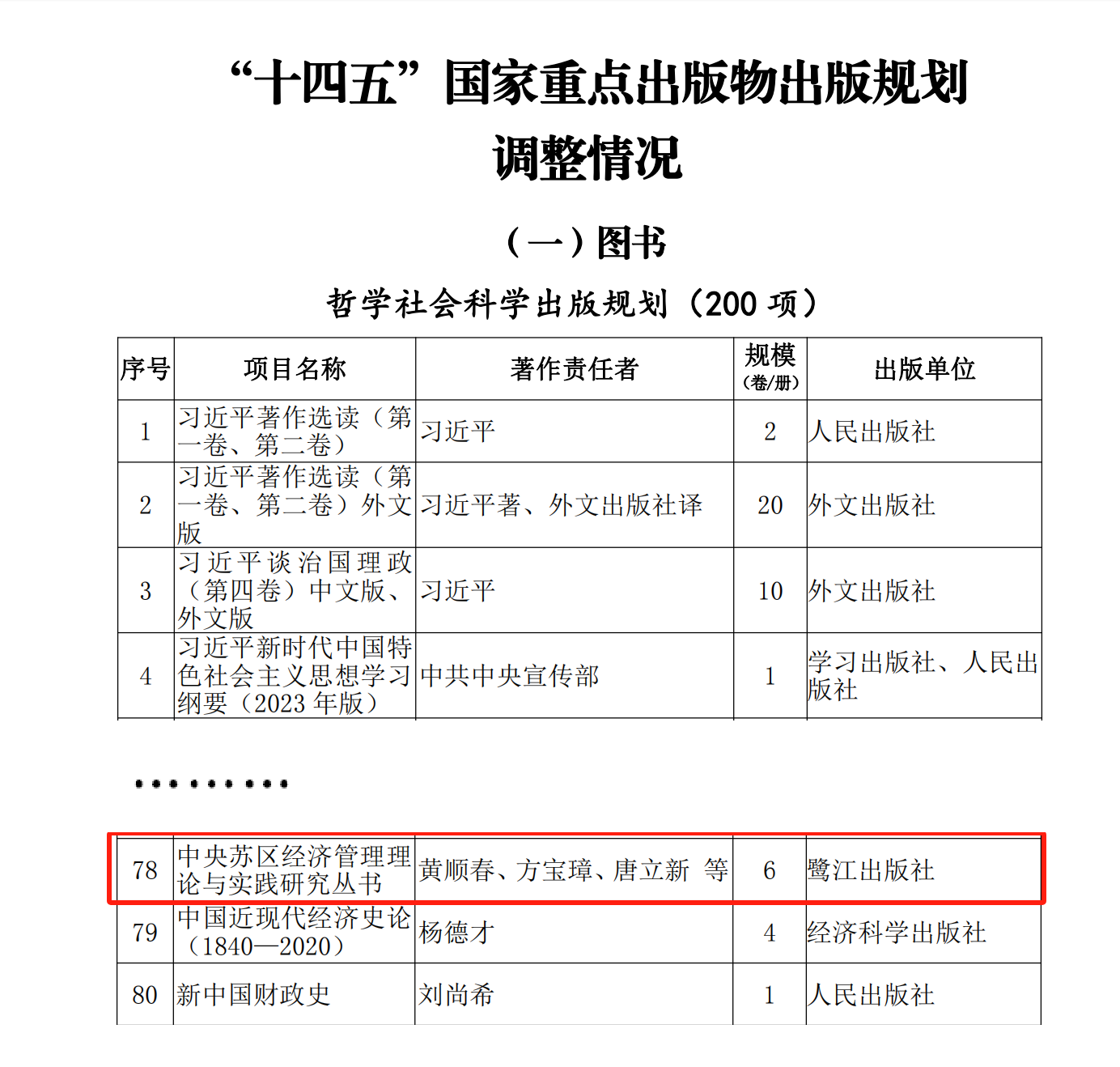 本网讯 近日,国家出版基金规划管理办公室公布《2024年度国家出版基金资助项目评审结果公示》,由经济管理学院黄顺春教授、唐立新副教授、赵越博士等策划及组织撰写的《中央苏区经济管理研究》丛书(共七册)成功入选,这是继2023年该套丛书获批“十四五”时期国家重点出版物出版规划立项后的又一次重大突破。