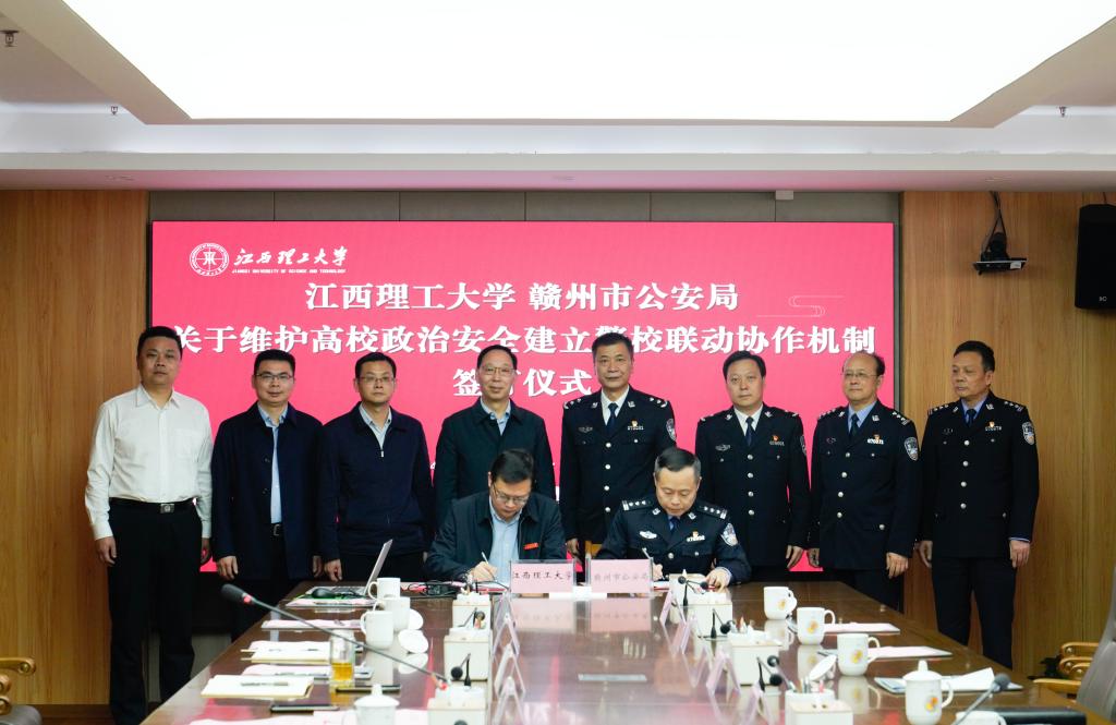 与赣州市公安局在三江校区濂溪楼2号会议室举行交流座谈会,就关于维护高校政治安全建立警校联动协作机制签订警校合作协议。赣州市政府副市长、市公安局党委书记、局长叶新,市公安局党委副书记、常务副局长严全民,市公安局开发区分局党委书记、局长黄晓明,校党委书记杨斌,校党委常委、副校长熊志华出席座谈会。赣州市公安局及颜射
