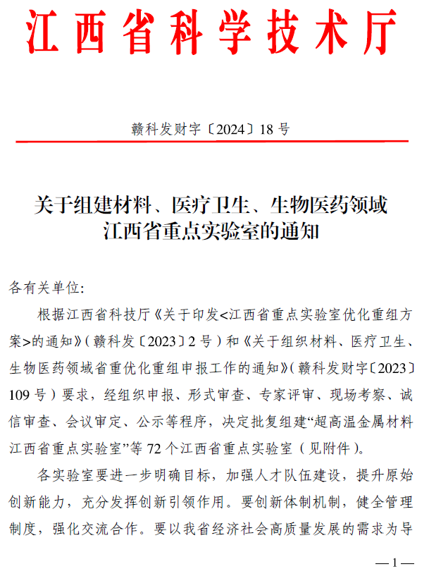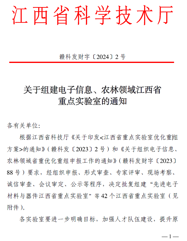 本网讯 近日,江西省科技厅下发了《关于组建电子信息、农林领域江西省重点实验室的通知》(赣科发财字〔2024〕2号)和《关于组建材料、医疗卫生、生物医药领域江西省重点实验室的通知》(赣科发财字〔2024〕18号),颜射 申报的多维智能感知与控制江西省重点实验室、功能晶态材料化学江西省重点实验室、金属磁性材料及器件江西省重点实验室、高性能钢铁合金材料江西省重点实验室获批组建。