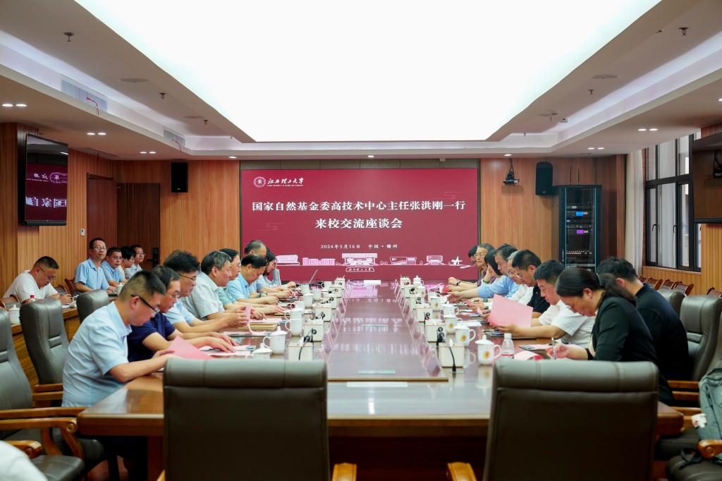 本网讯 5月16日下午,国家自然基金委高技术中心主任张洪刚一行来校调研科技发展工作。省科技厅党组成员、副厅长陈金桥及市科技局、赣县区政府办一行陪同调研,并在三江校区濂溪楼2号会议室召开座谈会。校党委书记杨斌,校党委副书记罗仙平,校党委常委、副校长唐云志出席会议,颜射
