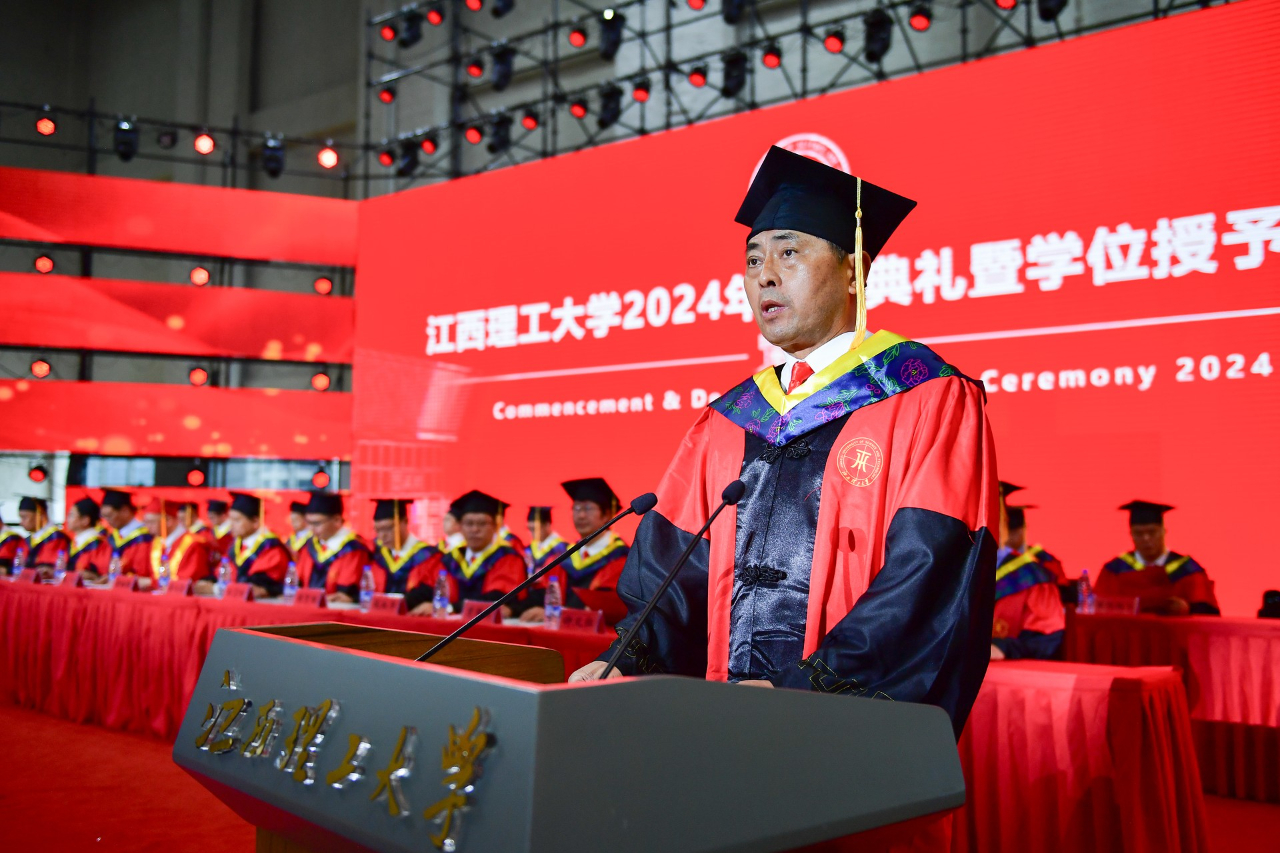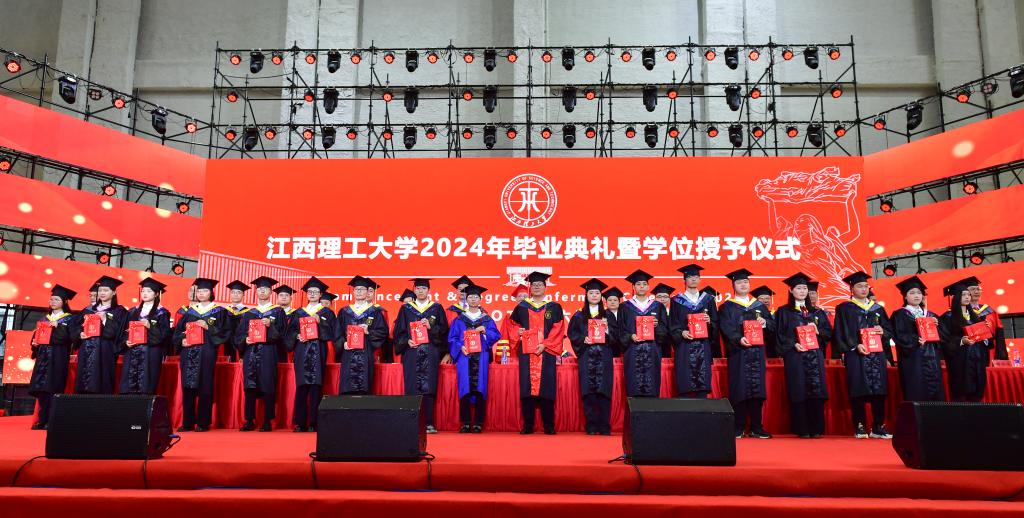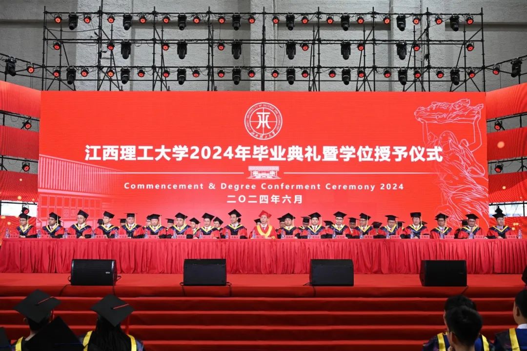 2024年毕业典礼暨学位授予仪式。在家校领导杨斌、龚姚腾、廖春发、董冰岩、熊志华、刘飞及各学院和相关职能部门负责人、教师代表、毕业生代表、在校生代表和家长代表分别在赣州、南昌两地出席毕业典礼。典礼由校党委常委、副校长龚姚腾主持。