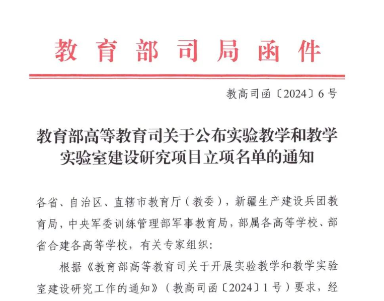 据悉,该项目是根据《教育部高等教育司关于开展实验教学和教学实验室建设研究工作的通知》(教高司函〔2024〕1号)要求,经各省级教育行政部门和有关专家组织遴选推荐等工作流程,旨在全面提高拔尖创新人才自主培养质量,不断增强实验教学育人能力,持续提升实验室建设和管理水平。