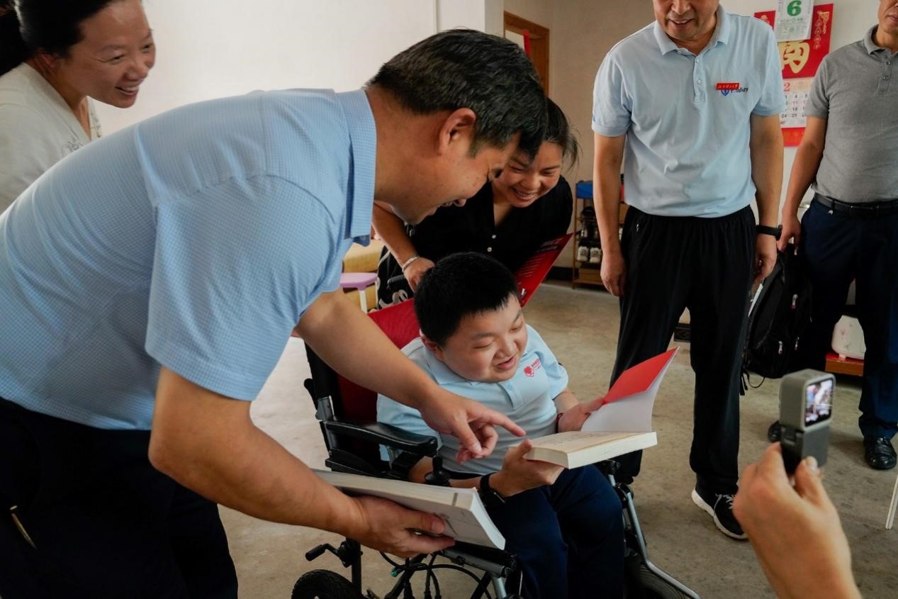 录取通知书的那一刻,这位坐在轮椅上的腼腆男孩露出了灿烂的笑容。他小心翼翼地抚摸着录取通知书,眉眼里满是欢喜。“谢谢校长,谢谢老师们!”陈昭康止不住地道谢,“谢谢江理选择了我!”