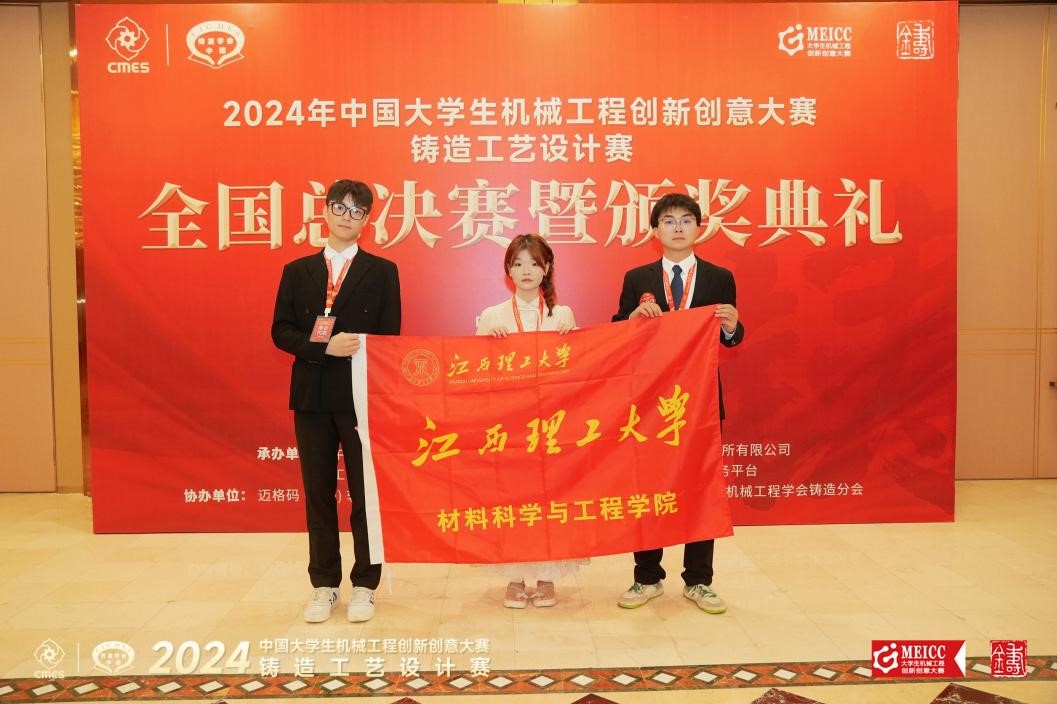 材料科学与工程学院学子吴若琛、刘子翔、何雯婕与化学化工学院学子陈心怡四位同学组成的参赛团队(指导老师叶洁云、张嘉艺)荣获本届全国大学生铸造工艺设计大赛国赛一等奖。颜射