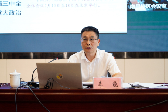 三江校区启航会议中心1号厅举行。省委宣讲团成员、省委党校(江西行政学院)常务副校长(副院长)李能作宣讲报告。校党委常委、副校长龚姚腾主持报告会。