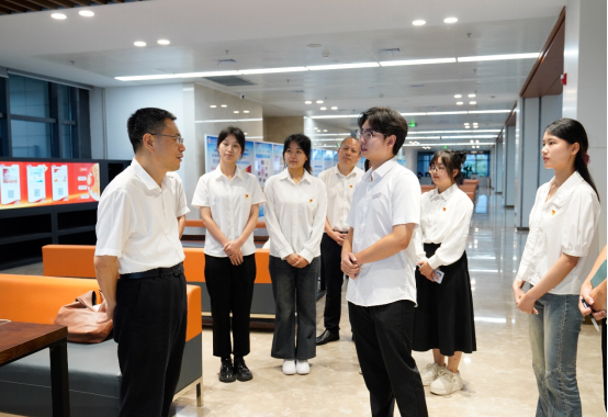 图书馆,参观了学校科技成果展,并就党的二十届三中全会精神学习心得体会与学生代表互动交流。
