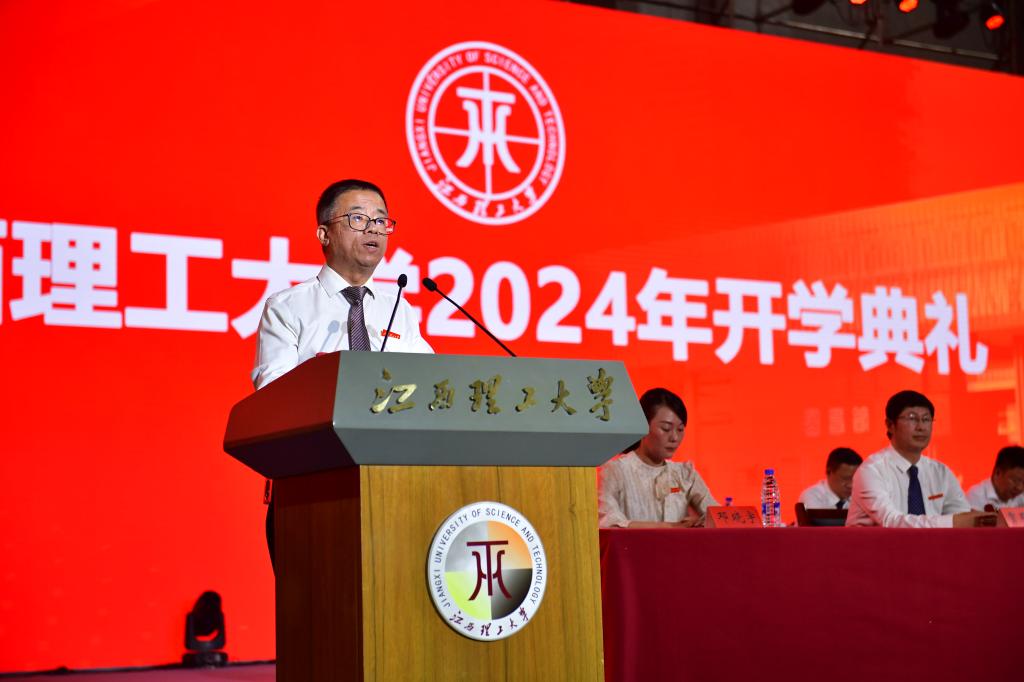 2024级新生开学典礼暨迎新晚会在赣州、南昌两地三校区首次以同步连线直播的形式隆重举行,八千余名本硕博新生启航江理,共赴新程。在家校领导杨斌、龚姚腾、廖春发、唐云志、黄志繁、董冰岩、刘飞,校党委常委盛晓明、汪锋锁,各相关部门负责人、教师代表以及全体2024级新生参加典礼。典礼由校党委常委、副校长龚姚腾主持。