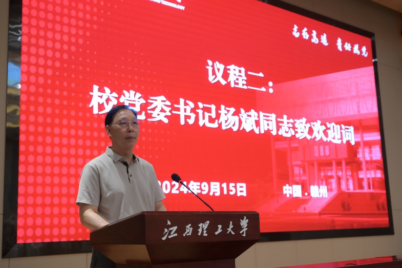 会上,校党委书记杨斌致欢迎词。他代表学校全体师生员工对校友们的归来表示热烈欢迎,特别感谢了校友们多年来在学校重大事项、重点任务上对母校的关心和支持。杨斌简要介绍了学校近年来的发展成就,并表示学校取得的成绩离不开校友们的大力支持,学校的宏伟发展蓝图更需要全校师生员工和海内外校友共同努力,希望校友们做弘扬三实精神的“领头者”、联络服务校友的“沟通者”以及推动学校发展的“践行者”,共同书写学校丰厚绚烂的育人史,共同点亮学校的历史星空。