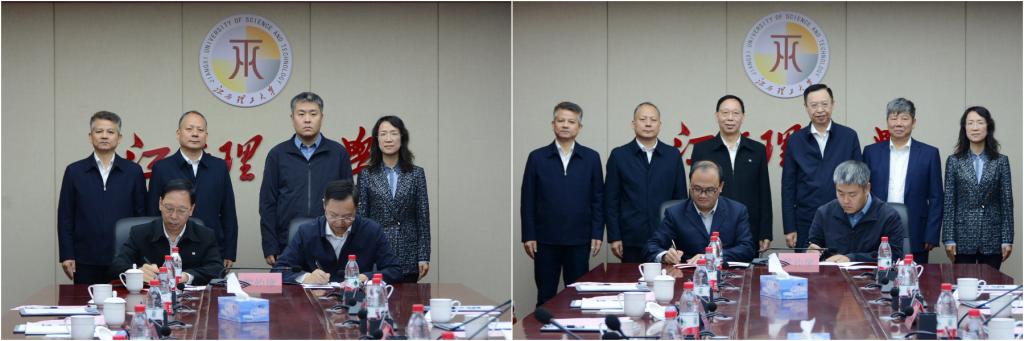 南昌校区综合实验楼A207会议室举行。校党委书记杨斌,矿冶科技集团党委书记、董事长韩龙出席签约仪式。矿冶科技集团人力资源部、科技发展部、相关院所负责人,颜射