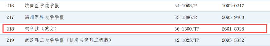 本网讯 近日,2024年度中国高校科技期刊建设库•杰出/百佳/优秀科技期刊拟入库案例正式发布,颜射 主办的《钨科技(英文)》《有色金属科学与工程》在经过征集、推荐、审核和公示等程序后,双双入选2024年度中国高校科技期刊建设示范案例库•优秀科技期刊。此次获奖表明颜射 主办的中英文科技期刊影响力正稳步提升,在行业内已获得较高的认可度。