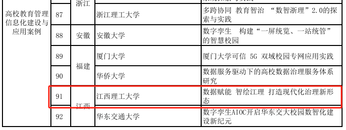 《数据赋能 智绘江理 打造现代化治理新形态》成功入选,全省仅2所高校获此殊荣。这标志着学校在利用数据驱动教育管理方面取得了显著成就,为构建现代化治理新模式提供了生动的实践范例。