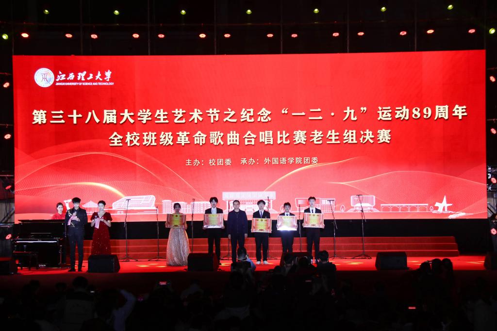 本网讯 12月7日至8日,由校团委主办,南昌校区团工委、法学院团委、外国语学院团委承办的第三十八届大学生艺术节之纪念“一二·九”运动89周年全校班级革命歌曲合唱比赛赣州赛区(含电子信息产业学院)、南昌赛区(含先进铜产业学院)决赛先后于红旗校区新体育馆、南昌校区一教报告厅顺利举行。