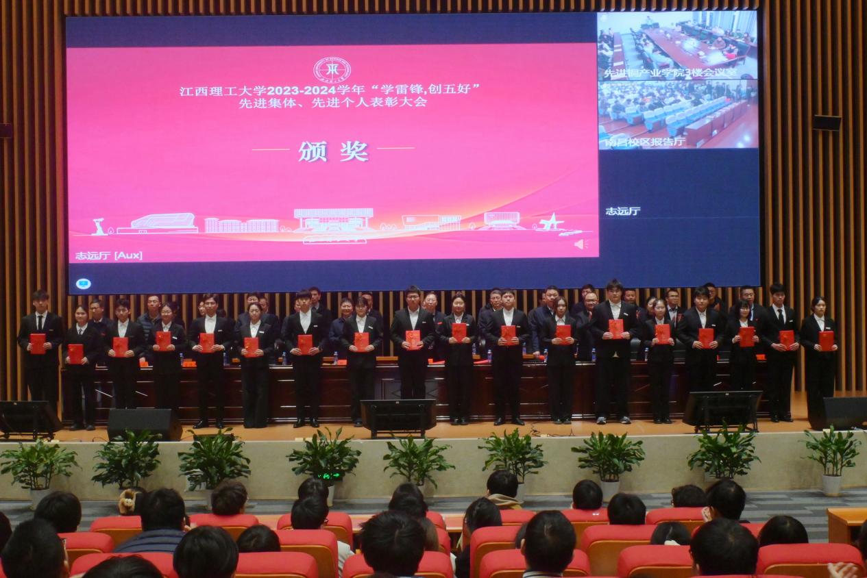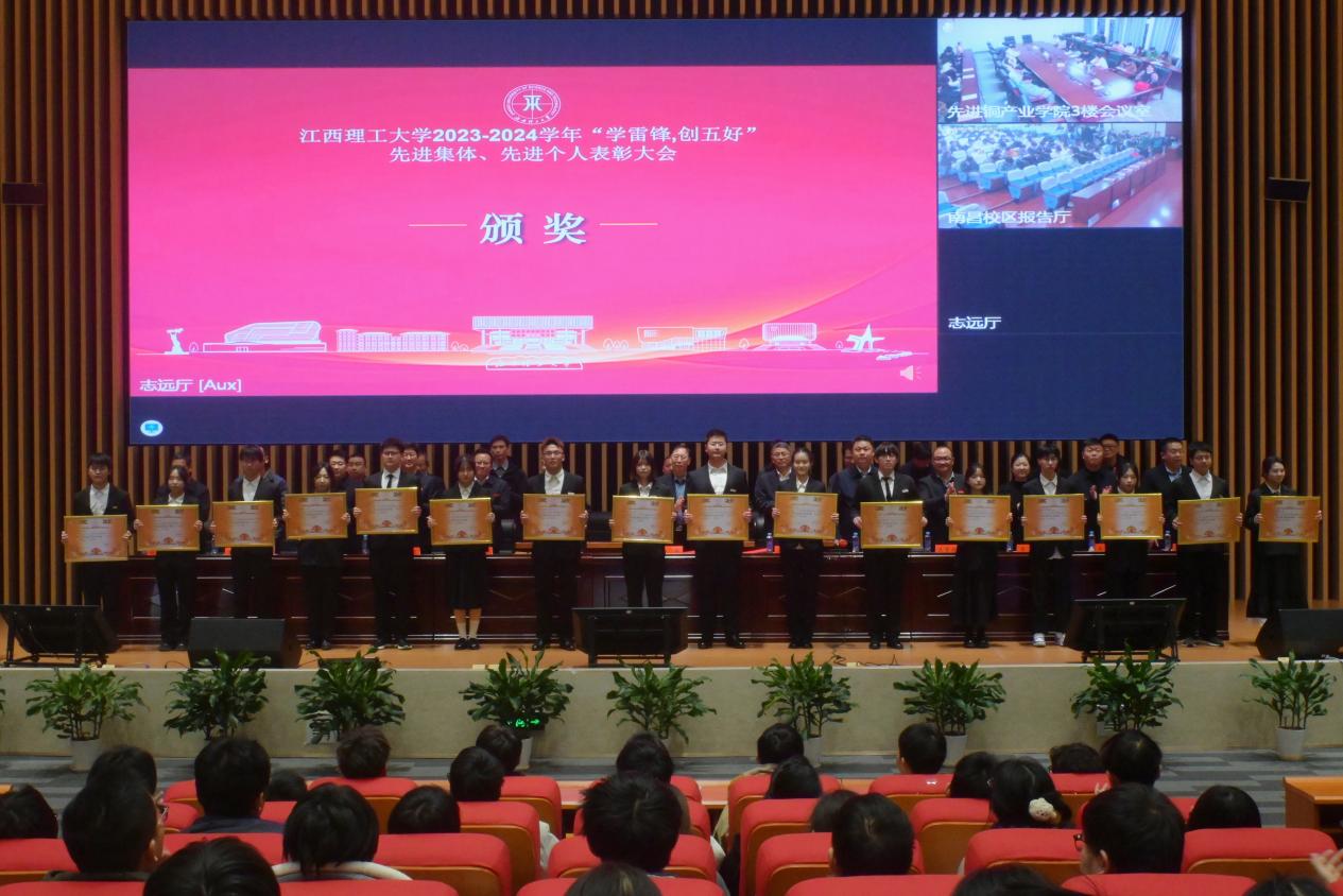 召开了2023-2024学年“学雷锋,创五好”先进集体、先进个人表彰大会。在家校领导、各相关职能部门负责人、学院负责人以及师生代表参加会议。大会主会场设在三江校区志远会议中心1号会议厅,南昌校区、先进铜产业学院(鹰潭)设分会场同步视频会议。大会由校党委常委、统战部部长汪锋锁主持。
