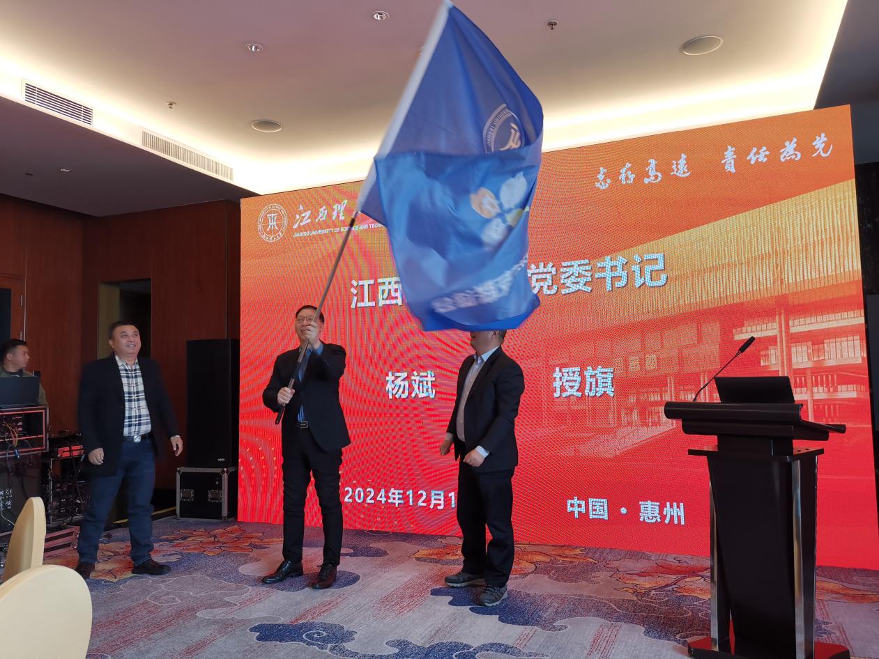 杨斌向惠州校友联谊会第三届理事会授会旗