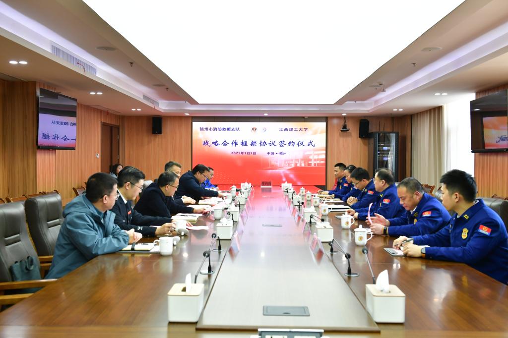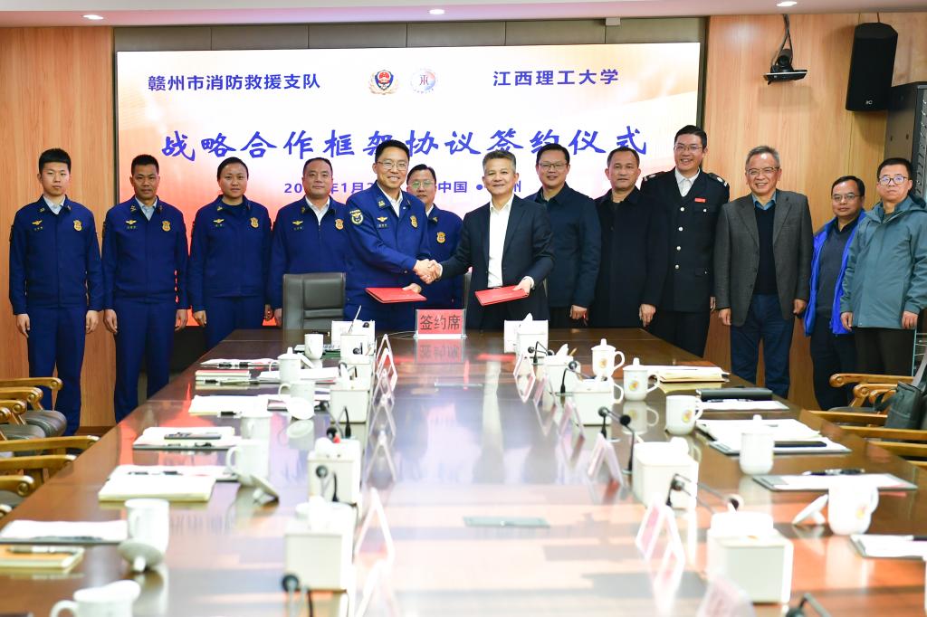 与赣州市消防救援支队战略合作框架协议签约仪式在三江校区濂溪楼2号会议室举行。校党委常委、副校长董冰岩、熊志华,赣州市消防救援支队支队长邓海辉等出席签约仪式。签约仪式由熊志华主持。