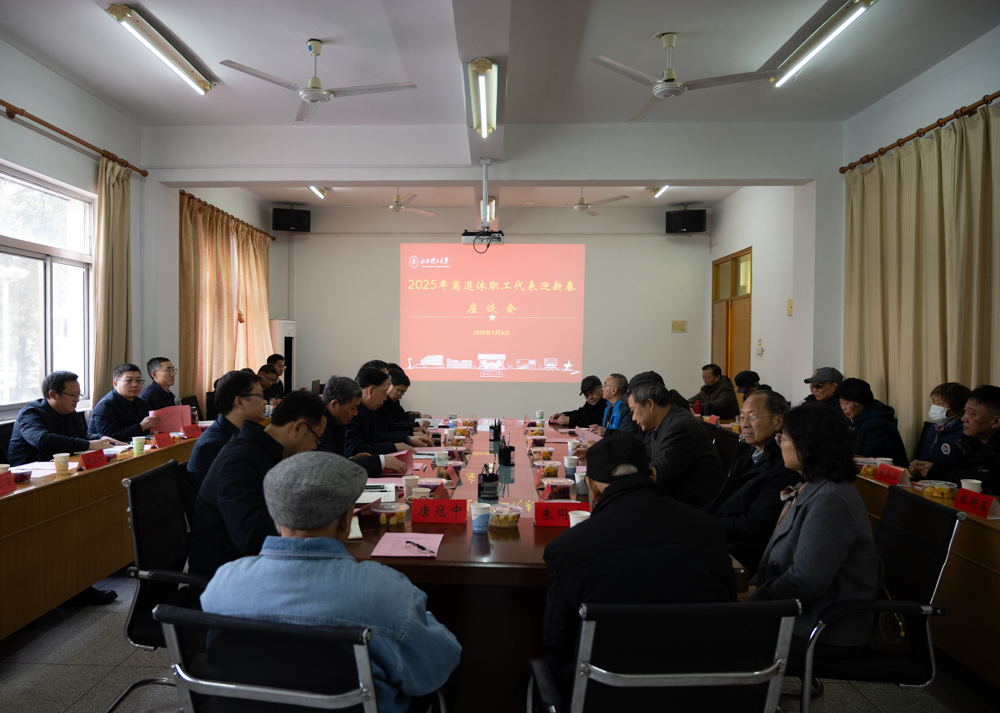 2025年离退休职工代表迎新春座谈会在红旗校区老年人活动中心召开。校党委书记杨斌,校党委副书记徐志峰,校党委常委、副校长龚姚腾、黄志繁、熊志华,校党委常委、纪委书记、监察专员刘飞,校党委常委、宣传部部长盛晓明及相关职能部门负责人、离退休教职工代表共计40余人参加。座谈会由徐志峰主持。