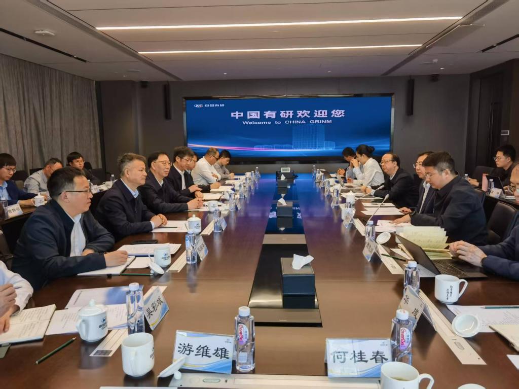 在中国有研集团,赵晓晨对杨斌一行表示欢迎。他指出,双方长期以来保持着良好的合作关系,在国家级科研平台共建、科技期刊合作、人才培养等领域成果显著,未来将以共建“有色金属结构材料国家平台”为契机,强化科技创新协同攻关,推动科技成果转化与人才联合培养,服务国家科技自立自强战略,助力江西省有色金属产业高质量发展。杨斌对中国有研集团长期以来的支持表示感谢,强调学校将全面落实共建方案,加强国家平台与省级平台的协同联动,聚焦重大科技项目攻关与工程硕博士联合培养,赋能地方产业创新升级。