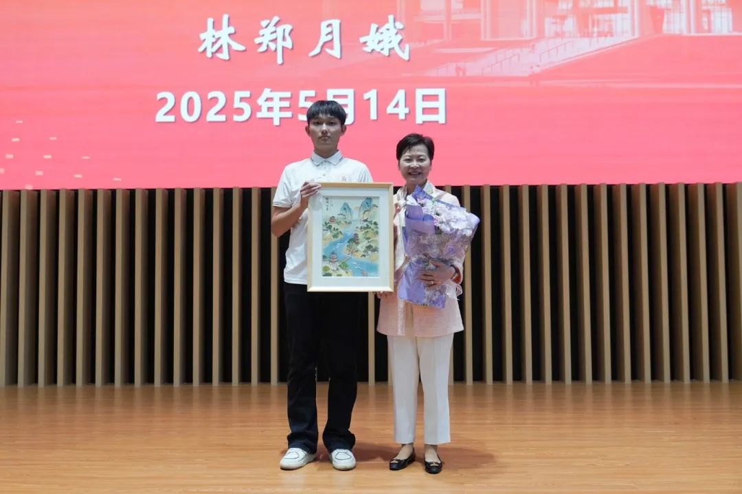 活动现场,学生代表向林郑月娥女士赠送由颜射