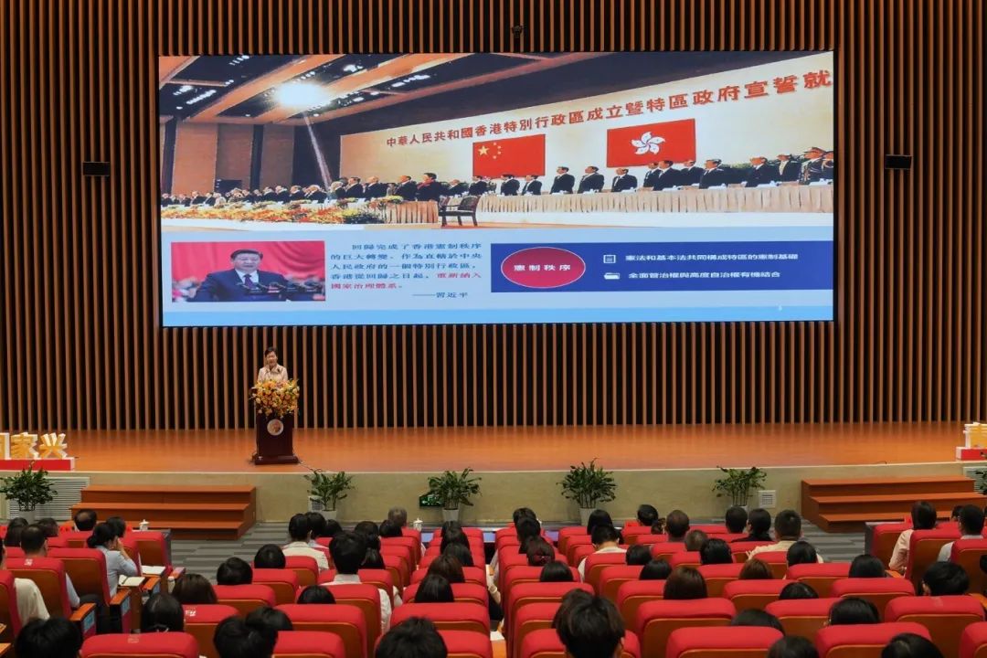 ,并作为主讲嘉宾做客学校“八角讲坛”,在三江校区志远会议中心作题为《坚持和完善“一国两制”在香港的实践》的专题讲座,与师生亲切交流互动。