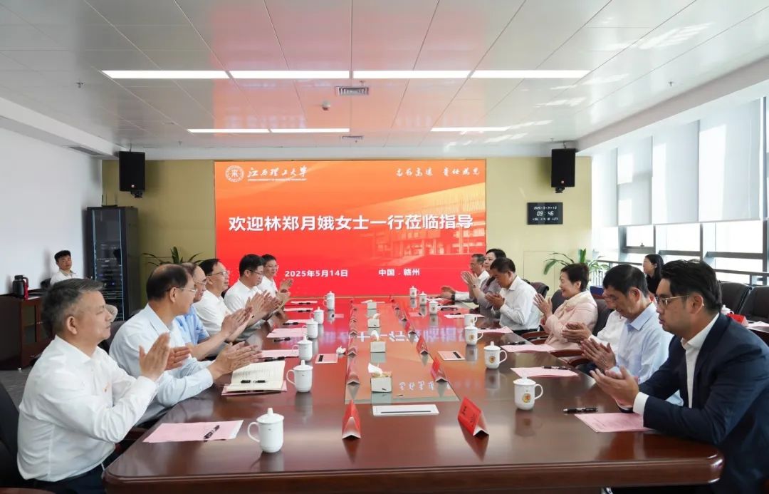 讲座前,林郑月娥女士一行来到校图书馆参观学校办学成果展,听取学校办学基本情况介绍,并与校领导班子开展见面交流会。会上,杨斌代表学校对林郑月娥女士的到来表示热烈欢迎,并表示,此次到访是一个良好的开端,将有效推动赣港两地高校、企业之间的合作交流。未来,全校师生将传承红色基因,主动融入粤港澳大湾区建设,为推进中国式现代化贡献江理力量。葛世荣代表学校向林郑月娥女士赠送纪念品。