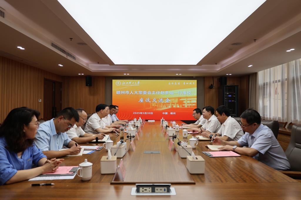 本网讯 5月30日上午,赣州市人大常委会主任赵多仙一行来校调研,并在三江校区濂溪楼1号会议室召开座谈交流会。校党委书记杨斌,校党委常委、副校长黄志繁出席会议,相关部门负责人参加会议。会议由黄志繁主持。