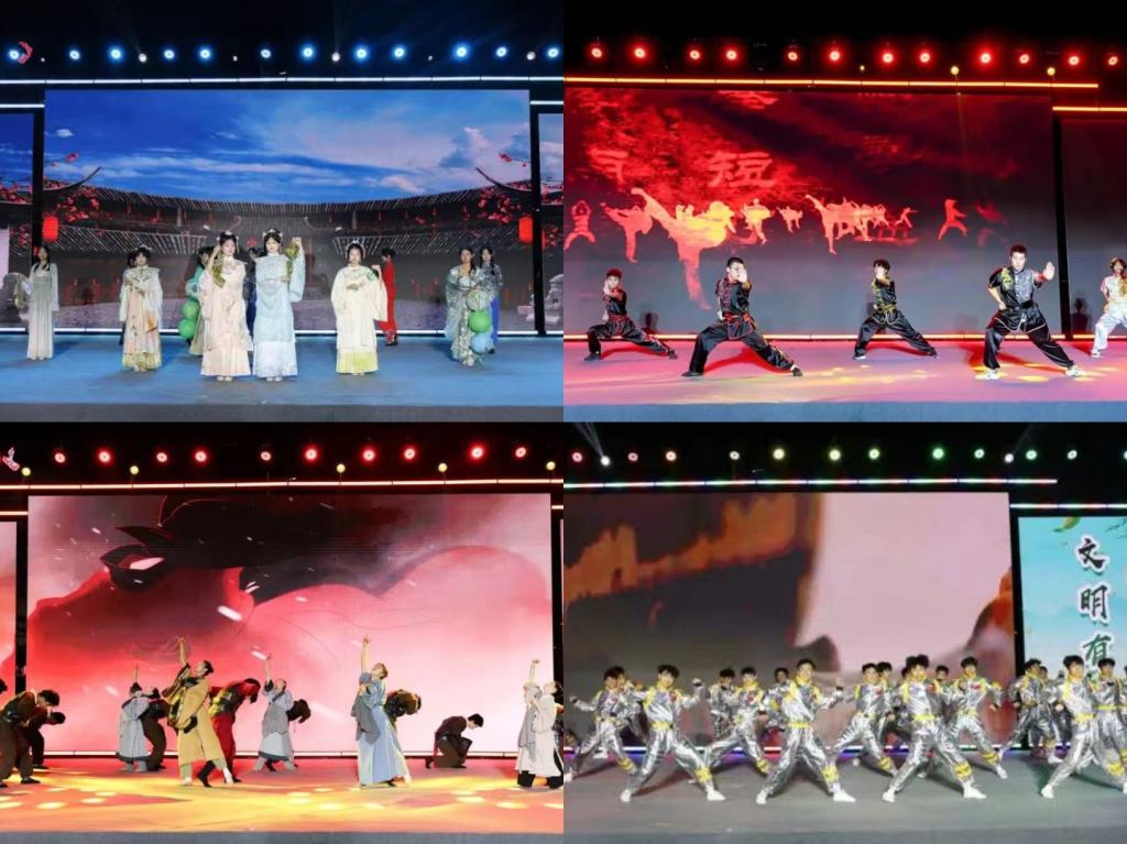 附属金岭学校带来舞蹈《五月初五是端午》,孩子们灵动的舞姿,配合传统服饰,巧妙呈现端午习俗;武术协会的武术表演《武动乾坤》动作刚健,拳风虎虎,尽显中华武术的阳刚之美;大学生艺术团声歌队的歌曲联唱《渔家傲·忆端午·离骚·岁岁端阳》中,队员们以优美歌喉,将古典诗词与现代旋律融合,传递端午的文化韵味;来自资源与环境工程学院的舞蹈《俑生俑事》则以独特创意和精湛舞技,带观众领略别样艺术风采;大学生艺术团礼仪队的走秀《端午客风,一脉“粽”情》充满客家元素和端午元素,时尚与传统完美融合。展演活动在健美操队《我愿全速奔向你》活力四射的表演中圆满落幕。