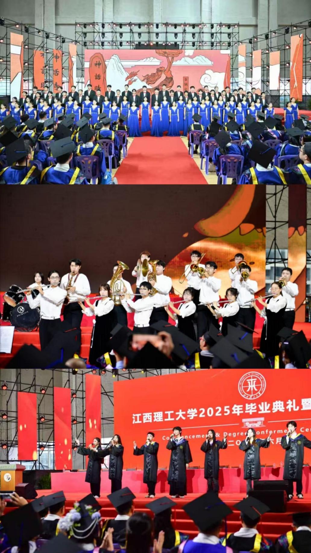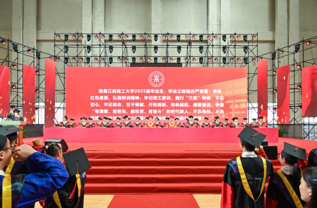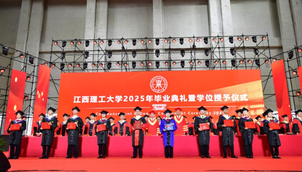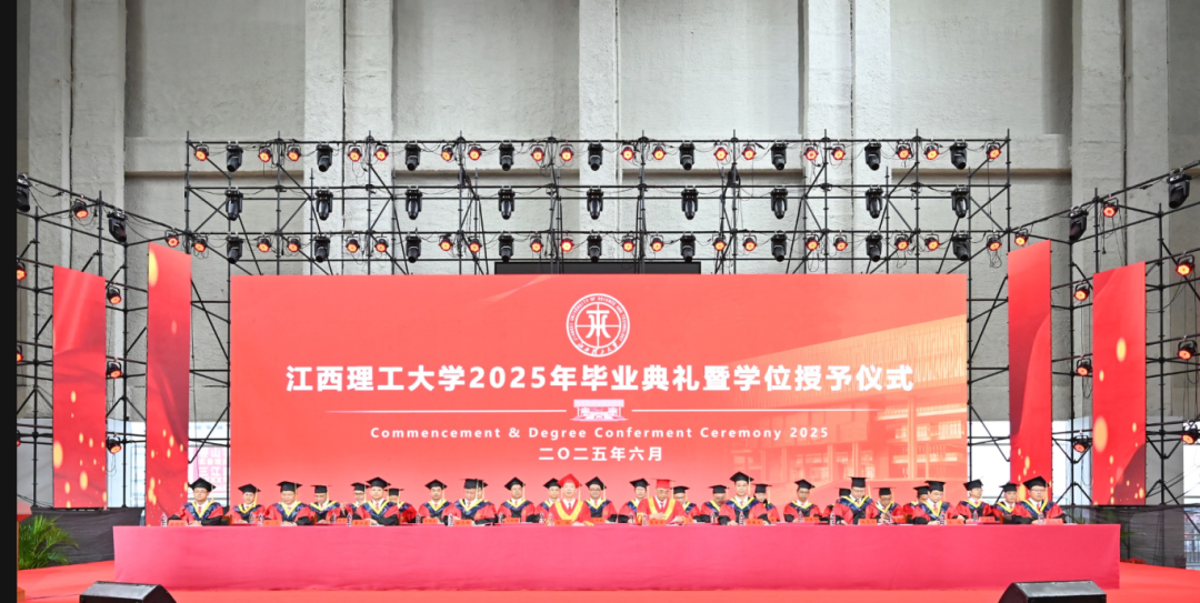 2025年毕业典礼暨学位授予仪式在赣州三江校区主会场、南昌校区分会场以及线上网络直播的方式举行。在家校领导杨斌、葛世荣、徐志峰、廖春发、黄志繁、董冰岩、熊志华、刘飞、汪航及各学院和相关职能部门负责人、教师代表、毕业生代表、在校生代表和家长代表分别在赣州、南昌两地出席毕业典礼。典礼由校党委常委、副校长熊志华主持。