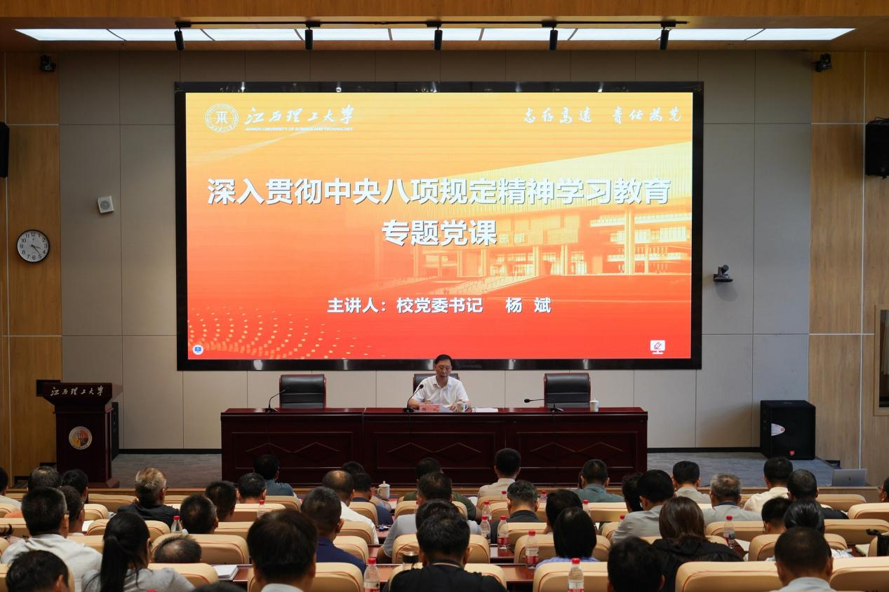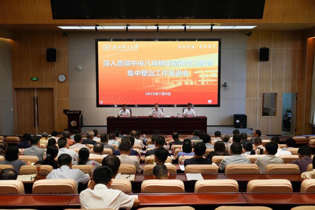在三江校区启航会议中心1号会议厅召开深入贯彻中央八项规定精神学习教育集中整治工作推进会。在家校领导、党委常委,相关职能部门负责人、各二级党委书记,2024年新提拔干部、年轻干部及关键岗位干部等参加会议。南昌校区、先进铜产业学院(鹰潭)同步视频参会。会议由校党委书记杨斌主持。